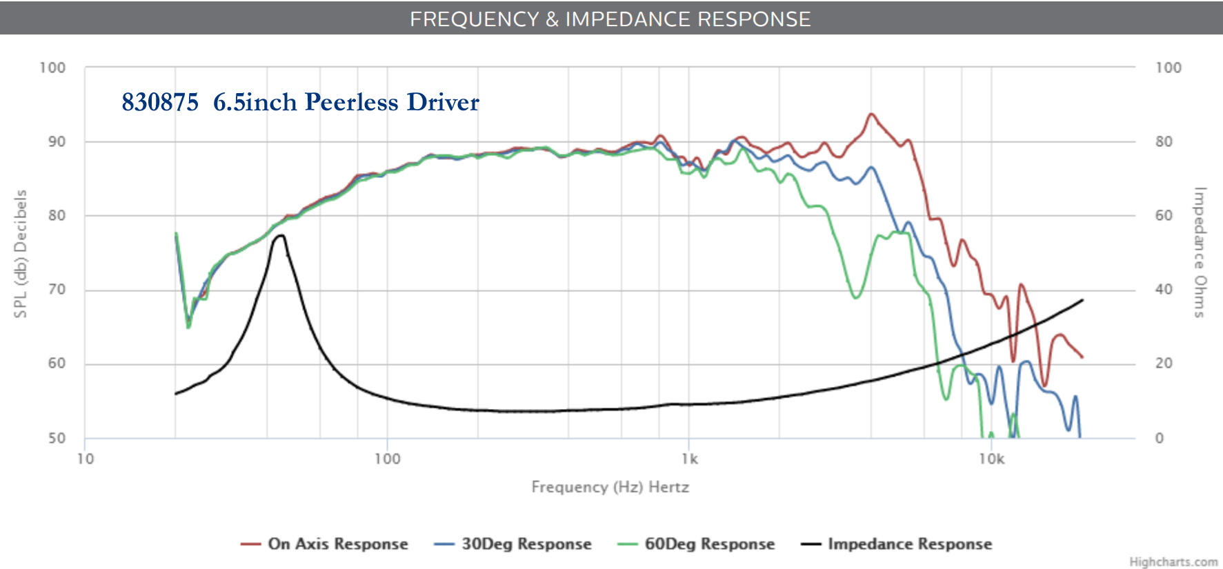 One of my main goals in this system was to have no crossover frequency between about 800HZ and 6kHZ, because that's the frequency band that has the best potential for creating really good stereo effects (below about 1kHZ inter-aural crosstalk blurs imaging cues), and stereo imaging accuracy is hugely dependent on the degree to which both speakers have the same acoustic output at the listening chair, over frequency. Room acoustics are likely to screw this up anyway, but having a crossover happen in that frequency range is likely to make it worse. The 3 inch Peerless TG9 midrange driver gives me the ability to do this well. Bigger drivers usually have some kind of FR problem around 3-6kHZ, and smaller drivers usually have excessive distortion issues if you try to take them down below about 300HZ. To be able to reproduce 480HZ to 7kHZ cleanly and with a relatively flat frequency response is great.