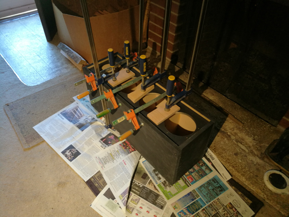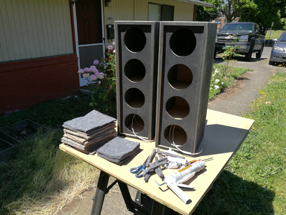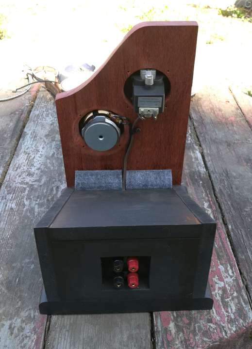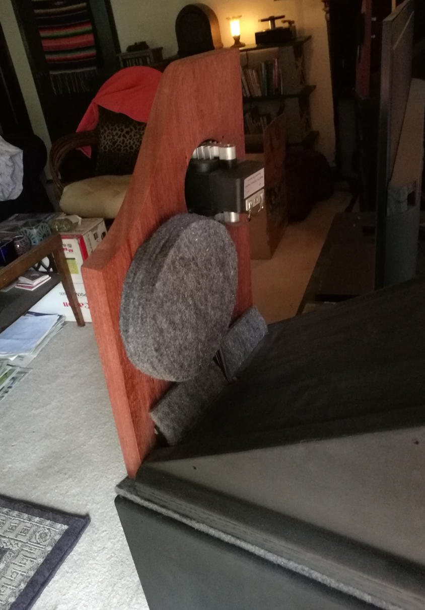 There's also a piece of 3/8 inch thick wool felt between the woofer cabinet and the separate mid/tweeter baffle, to minimize any potential squeaks if the woofer cabinet vibrated too much at high levels.