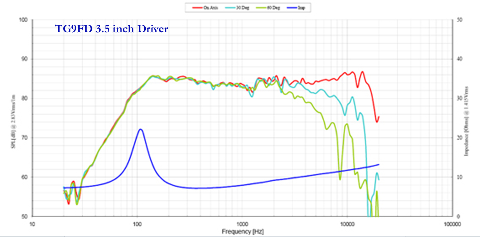 Since Interaural Crosstalk blurrs stereo imaging below about 1kHZ, it's the frequencies above that which are responsible for the majority of the imaging magic. Especially the range of 1kHZ - 6kHZ, in my opinion. If you wanted the midrange driver to go down to 100HZ, you'd need more cone surface area, and for that I'd go with at least two 5 inch drivers. If you're only taking the driver down to 300HZ - 500HZ, and don't plan to run it screaming loud, a smaller driver diaphram means more even off-axis frequency response. The only real downside of the TG9 driver (and most other 3 inch drivers) is it's efficiency(about 85dB 1W/1Meter). If you were going to have a passive crossover network, you'd need to resistively attenuate the woofer(s), which amounts to a sunstantial power loss, and looser damping on the woofer cones. It's all about tradeoffs and personal preferences. You can't tell from the photo, but the TG9 driver has a very well ventilated spider as well.