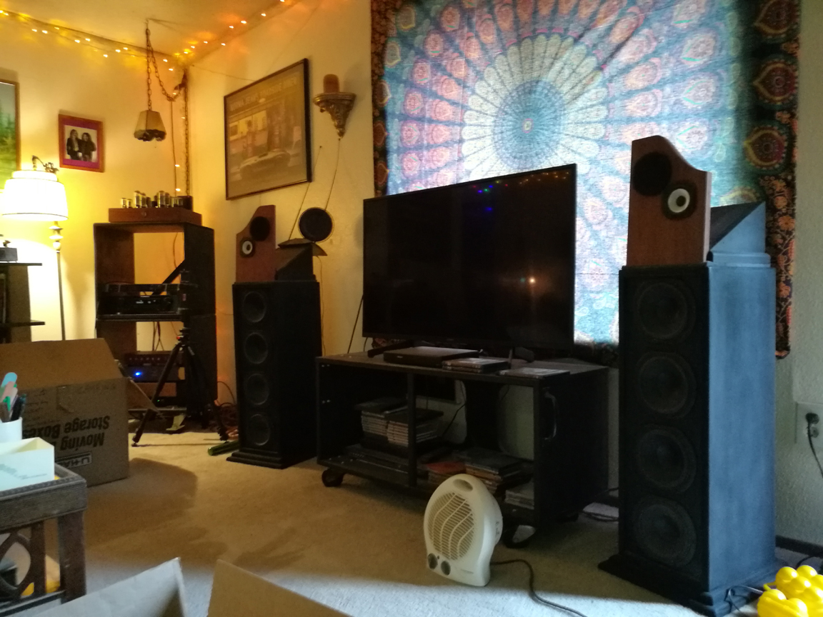 I used to think that putting a woofer in a closed box near a wall, and actively equalizing it to be acoustically flat down to 30HZ is about as good as it gets. Although that can be very good, I think it's even better to keep woofers further from room boundaries, so the acoustic reactance of the room will be slightly less. There's no shortage of test results that show that room acoustics substantially damage the acoustic frequency response of even the best speakers out there ("comb filter" cancellations of 10 to15dB are common, all across the frequency spectrum, at the couch - usually mostly below 1kHZ). Below about 400HZ, room acoustics reflections and resonances are often a big issue because the half-wavelenths of the acoustic energy fit between parallel surfaces or opposite corners that often exist in a typical living room. Below about 200HZ, same story and is why bass often sounds boomy and unpleasant. The smaller the room the more the listening room acoustics do damage, because acoustic energy dies off logarithmically with distance, twice the distance means approximately 1/4 the energy (if from a point source - so this is only largely true). Hence the skinny woofer tower. I'm even adding a switch that will turn off the lower two drivers, of the four, to further this concept (as an experiment). At low listening levels I might prefer that.