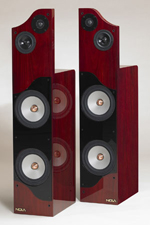 The tweeter baffle front board (Vermilion colored wood) tilts back by 5 degrees, so it doesn't look like it's about to fall off the woofer, and because of the slightly narrow vertical off axis response of the ribbon tweeter, which is 1.5 inches tall. I thought this might work better in my listening room. I doubt if the tilt is necessary, but I did it anyway.