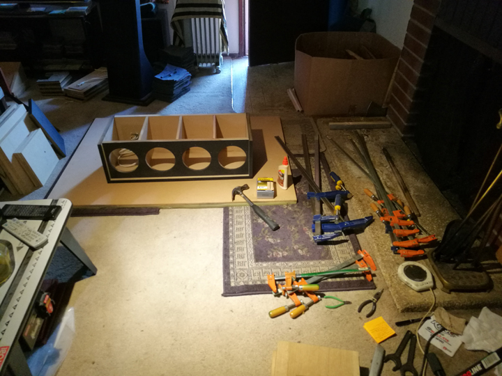 The woofers each have their own closed box internally, part so none of the half wavelengths they will be producing will fit inside these cavities, so minimal resonance potential, and part because those internal shelves provide very important bracing of the 3/4 inch MDF cabinet material. Radiation from the cabinet may seem very minimal, but the cabinet has way more surface area than the woofer diaphragms, so can actually be pretty significant. The internal dimension ratio for each woofer cavity are the numbers recommended by Roger Russel (formerly of McIntosh), which is 1:1.25:1.6 . This ratio minimizes the degree to which harmonics of resonances double up, creating a more significant resonance. Again, this shouldn't even be an issue since none of the half wavelenths fit inside the very well damped internal cavities.