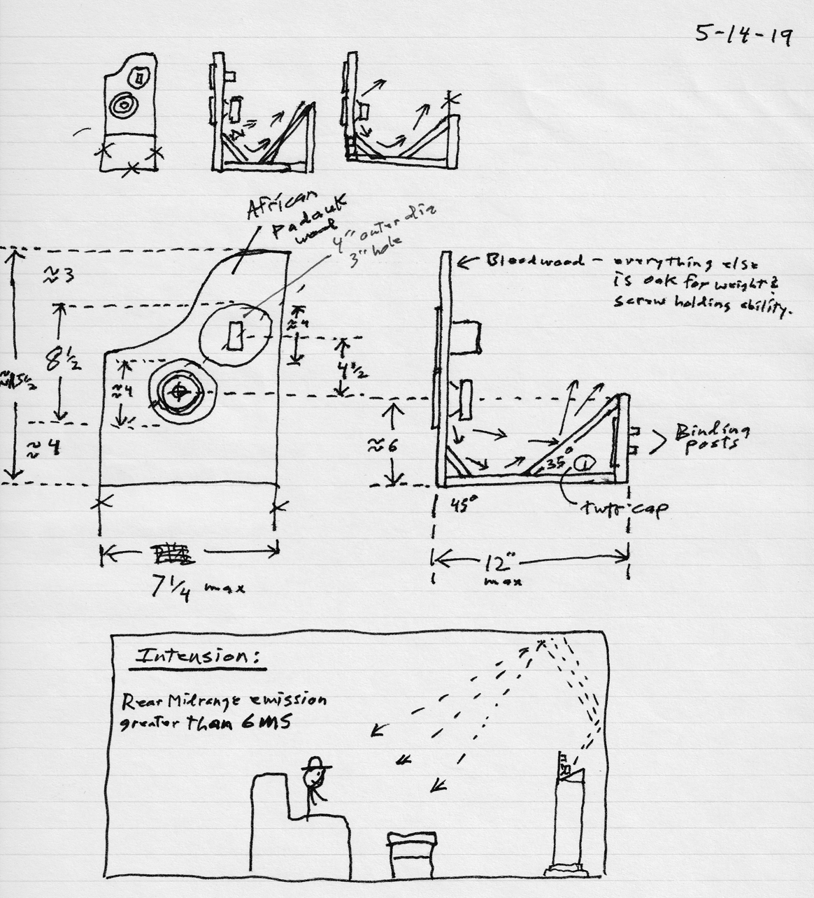 The way I design a speaker is to first look closely at the environment the speaker will be used in. Not just acoustically, but also how it will integrate into the rest of the furnishings. For me, I appreciate a small footprint on the floor, to fit better in a crowded room. I didn't want them to be more than about 42 inches tall, so theyuldn't seem so dominating. Yet at the same time, I've experimented with this and I've found that the tweeter and mid always work better with the room when they are higher up off the floor. 42 inches seems like a good number for the approximate overall height.