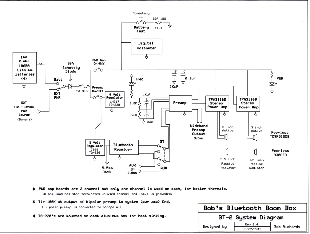 Since this Boombox will get used on campouts in the mountains, possibly with direct sun shining on it for hours, I wanted to avoid pushing the poweramps to their limits (for better reliability).