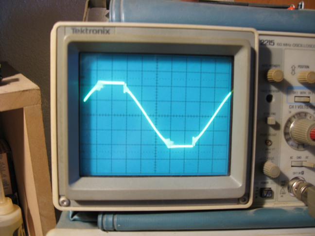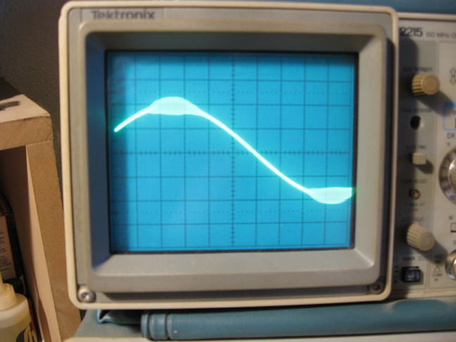 When pushed all the way into clipping, I got this waveform (below). Not pretty: