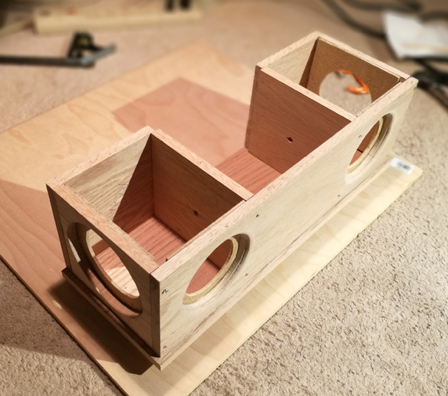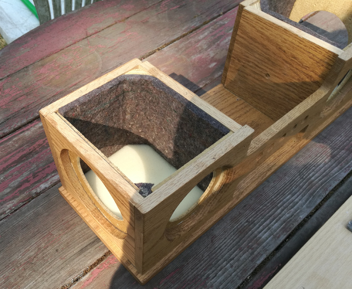 But with a little ingenuity I got that done. The holes for the speaker wires need to be drilled before assembly, unless you have one of those right angle drills.