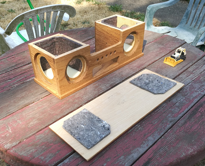 I also added a significant wad of "acousta-stuff" (not shown) (similar to fiberglass) before sealing the cabinet.