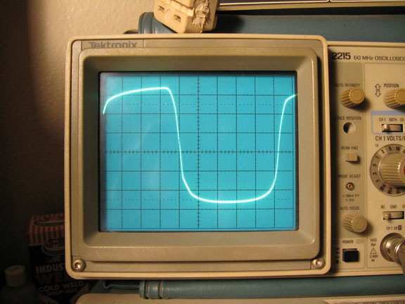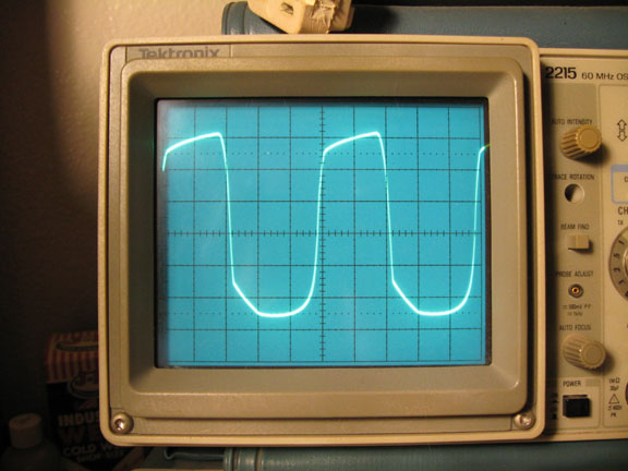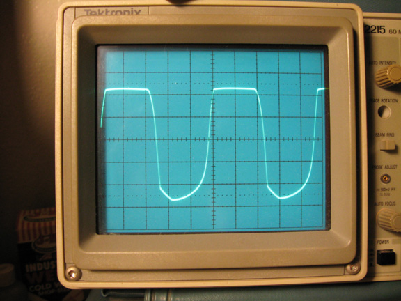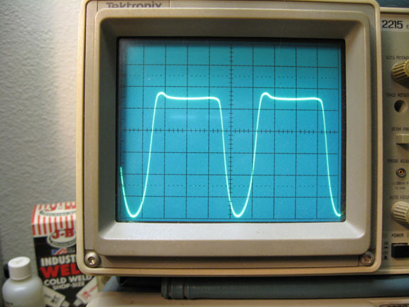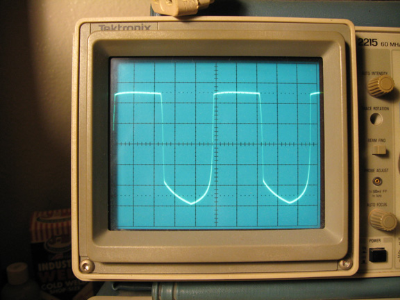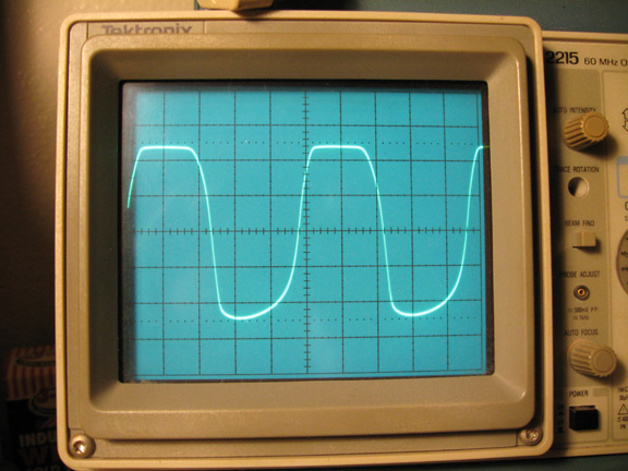 Above is 20V/div. This is the waveshape just short of actual clipping.