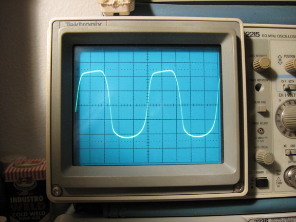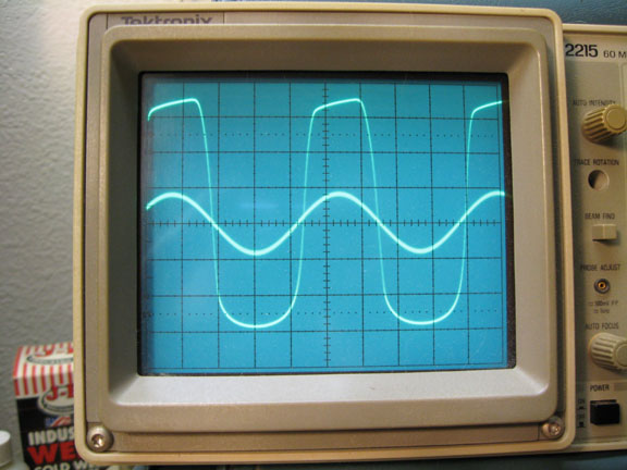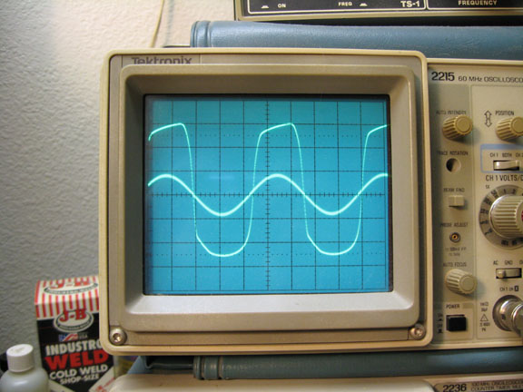 Note: Looking at only the waveforms tells a pretty limited story, but that's what I've got. Use of a specrum anayzer would be every bit as important, but would also be limited. The real test is playing guitar through it for about an hour, "feeling out" various distortion levels and tone control variations. I did both.