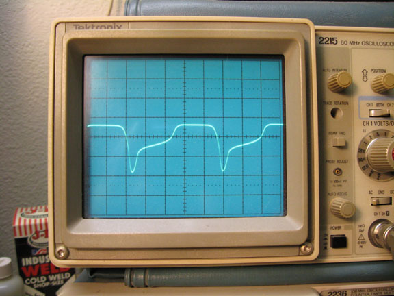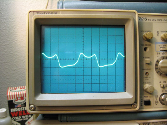 Photo 3, 12AX7 section at edge of distortion (plate of voltage gain triode):