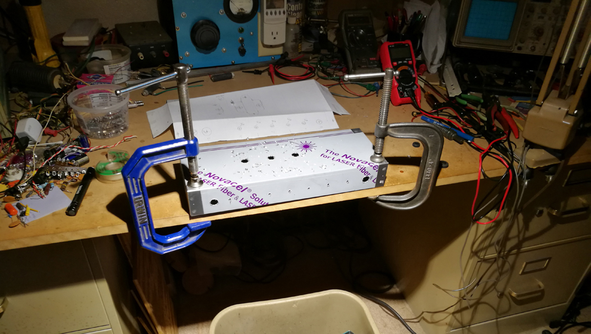 of the aluminum chassis. I scotch tape it onto the chassis, center punch all
