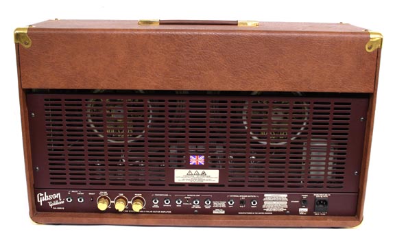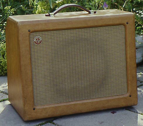 This classic Gibson stereo amp from the early 1960's was designed to work with a guitar that had a stereo output, or guitar in one channel and a mic in the other. There was a guitar that had two pickups with separate outputs which created a pseudo stereo effect. The built in spring reverb was mono. It used 6BQ5 output tubes for about 30 watts total. The power supply is in a separate chassis down at the bottom of the cabinet. The speakers are angled outward to the point that the acoustic outputs may not add very effectively at a distance (out in the audience). Probably lots of fun in a home. I read that Joe Walsh had one and liked it a lot. Probably because of the sound of the distortion (one channel is likely to clip (overdrive) at a slightly different level than the other channel, creating an overall smoother overdrive distortion).
