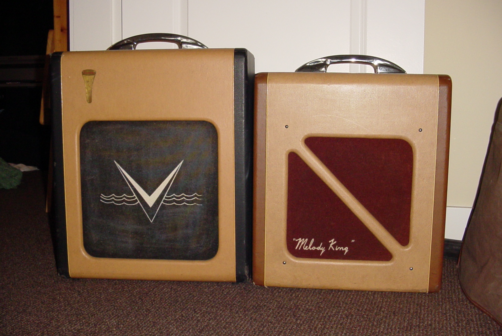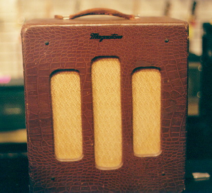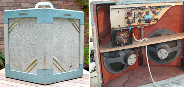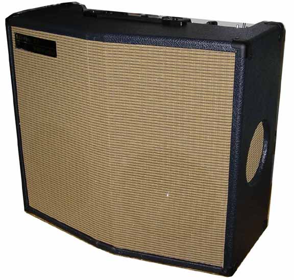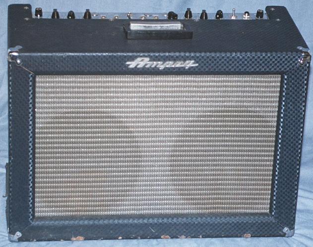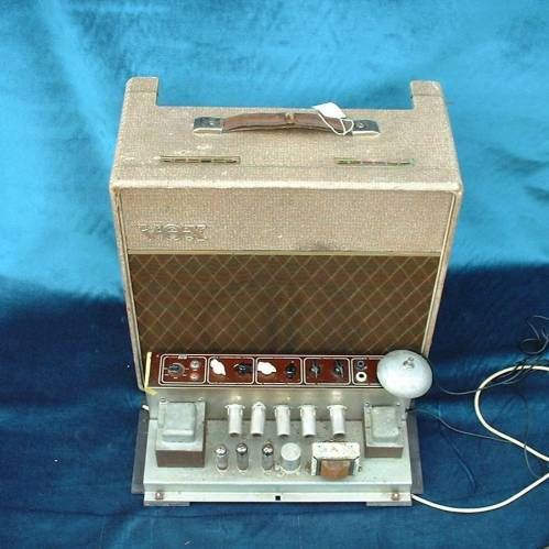 Here's the Ampeg "Super Echo Twin 2" Stereo guitar amp, the ET-1 or 2, also from the early 1960's only. Speaker panels not angled, but people in forums on the web say it had a very good "octal fatness" sound.