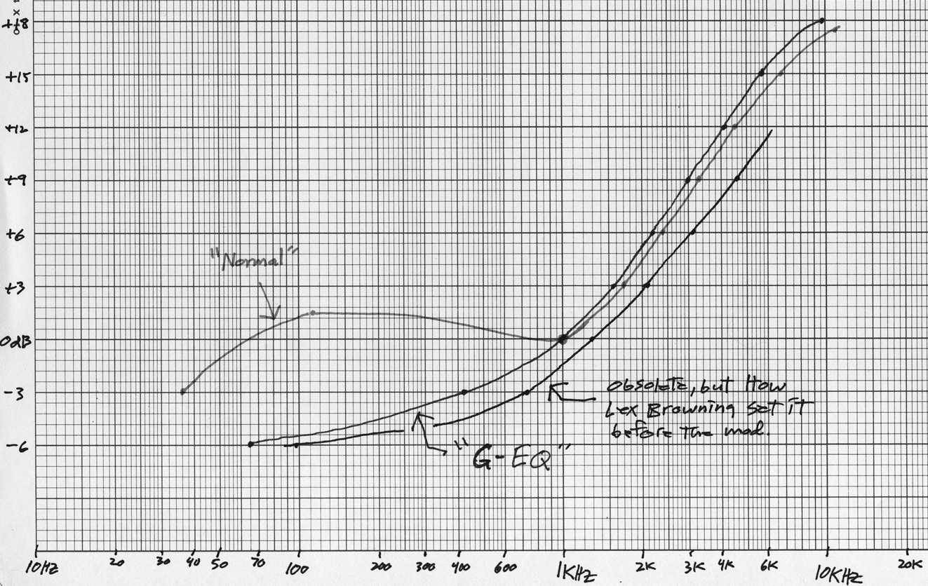 Coming from the Hi-Fi world, it's hard to comprehend that the electrical frequency response that sounds best with a Gibson ES335 or a Fender Stratocaster is as follows: