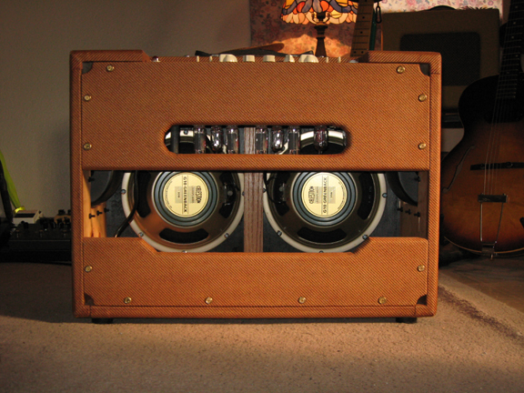 There are many more. Guitar amps were ornate art objects in the early years, and got more plain looking since about the early 1960's. I've noticed some rather ornate amps at Guitar Center more recently, which may or may not be "gimmick" amps that don't really measure up functionally. Personally I like the 1950's tweed look done in a more art deco way. Hence the arches and rounded corners. Fun to look at but not a huge attention grabber. When the cabinet puts an obstuction in front of the speaker cone; done right it can reduce the upper midrange beaminess of the sound and be more pleasant to listen to when you're on axis. Any more than the 3/4 inch bars in my design would reduce the good stereo projection at a distance. Since my amp is almost always on the floor, I prefer to have the control panel on the top of the amp, rather than the front.