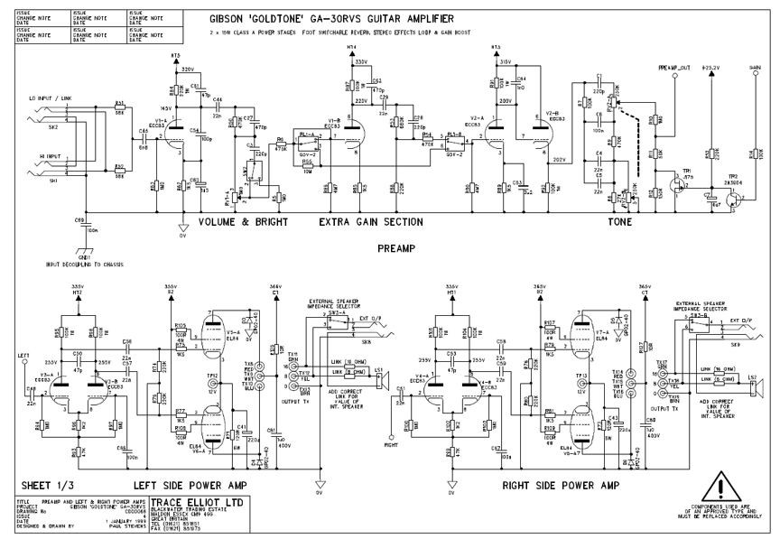 This look doesn't work for me. Speaker drivers are not angled outward. Controls at the bottom of the back???!!, The preamp is mono. Here's the schematic. It appears that you can switch in "extra gain", but not be able to adjust that gain independently... WTF...