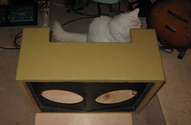 I rounded most of the corners with a 1/2 inch radius router bit, before applying the tweed covering, for a mellower look (I hate sharp corners!). Fender used pine in the 1950's, but they use plywood these days. Plywood is more durable but can have problems with a router. Clapton allegedly prefers the sound of pine.