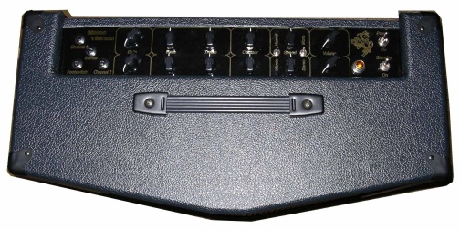 This one, custom made in Australia, possibly currently available, has 6 inch drivers aimed out the sides, in addition to the main 10 inch speakers aimed out the front. This one has slightly angled baffle panels for the large drivers (one of the very few that did that part right). Playing through it at home would probably be great, but on stage those 6 inch drivers may just be wasting power and/or projecting acoustic power to backstage, or into the side of another bandmembers amp. My experience is that the stage gets pretty crowded at most venues. You'd want to be able to switch off the side drivers when that's the case. Could look nicer. The control panel nomenclature is hard to read. Club lighting is often horrible. If I had to choose between all the stereo guitar amps that were ever made (assuming this is them), I might take this one, and replace the side firing drivers with large sunk handles for easier transport. It seems the least of the evils.