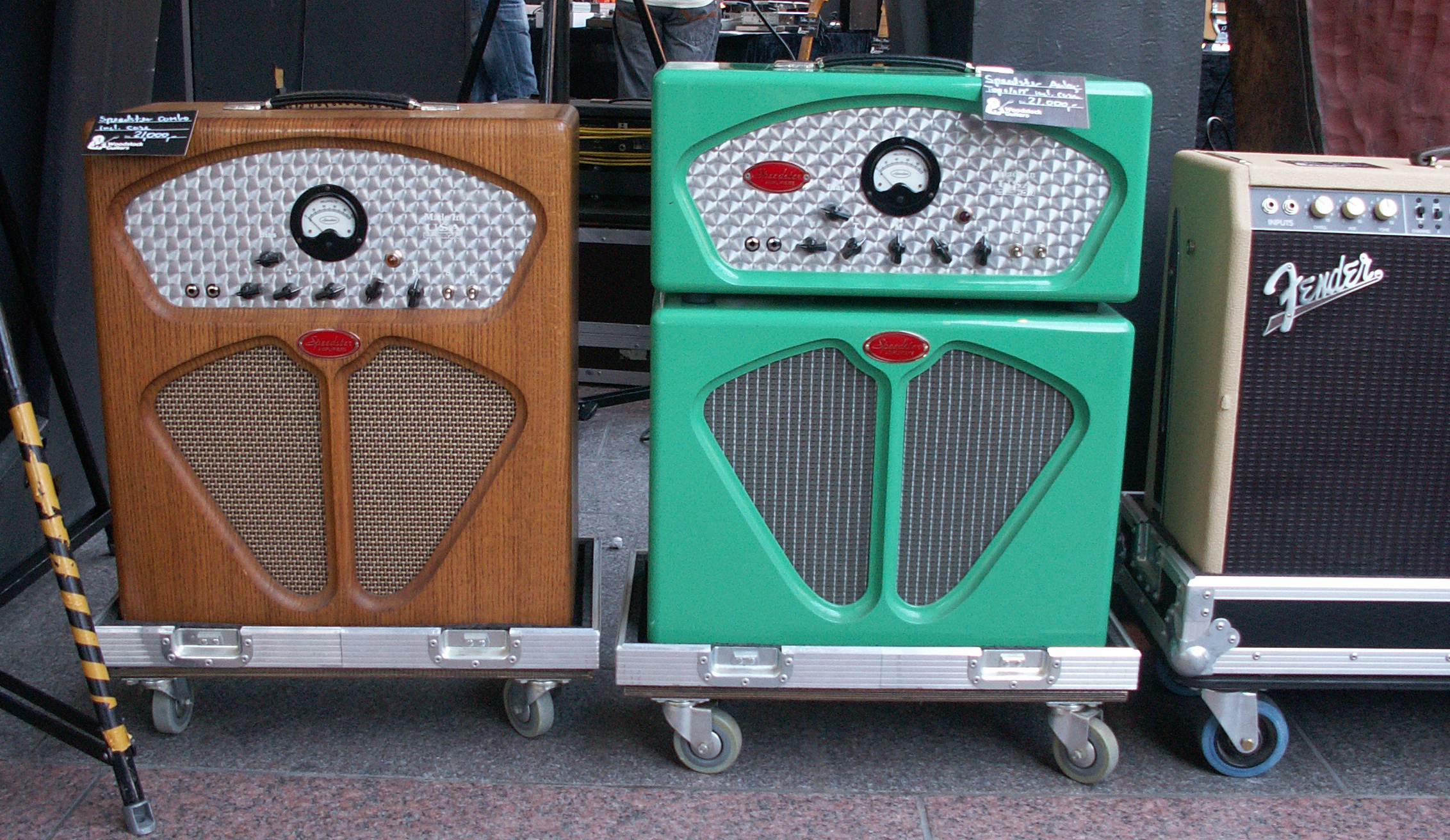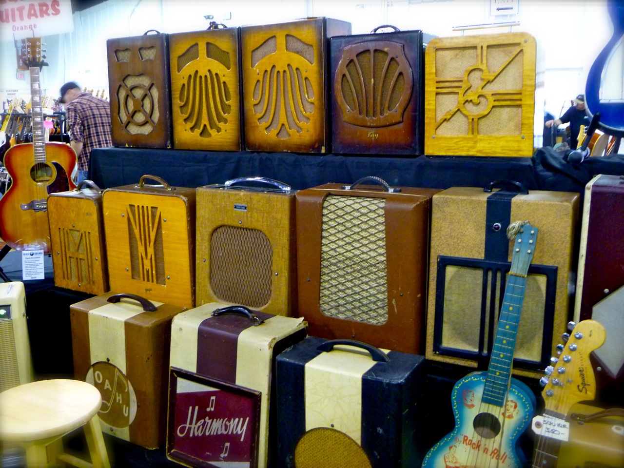 Second from the left is the Fender "woody" amp, which was the very first Fender amp. It came in 3 sizes.