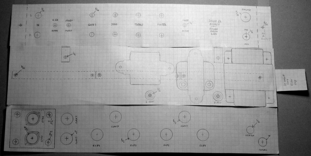 It's a bit time consuming to measure everything so you can draw things to scale. If you don't do these drawings before building an amp, you are asking for major trouble. Same as with the chassis layout. I actually sort of enjoy this part.