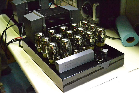 Here's the back side of it. It uses EL34's in the output stage. Running EL34's upside down, that close together, no fan, would be a significant reliability issue.
