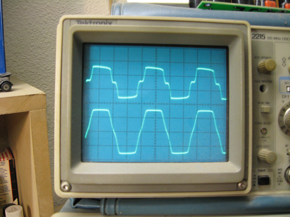 The lower trace shows typical crossover distortion when blocking distortion is not active (consistant class AB operation). It's those sharp corners that generate the high order distortion products that can be a bit much ("transistor sound").