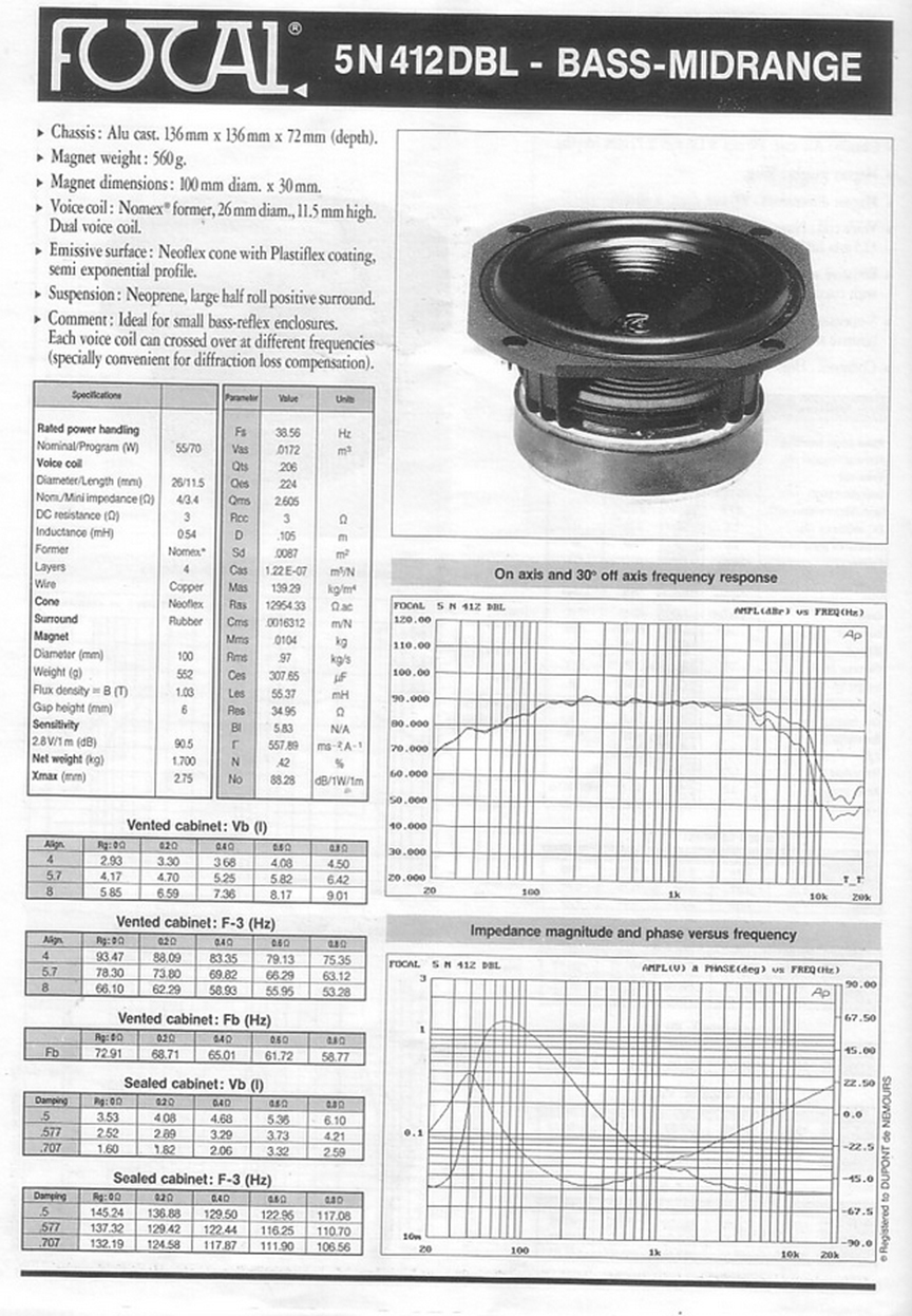 The five inch Focal drivers may not be state of the art by todays standards, but the relatively high Xmax spec means I could run as woofers in a small room, plus, I think they're plenty good. Purists might feel that harder cones are better because of the higher resolution argument. Others might argue that softer cone materials are easier to listen to over time. Less in your face. There might be a tiny bit of real-time dynamic range compression with the softer cone materials. Harder cone materials usually have resonance or "cone breakup" distortion issues in the upper midrange frequencies (2-5kHZ), right where the sensitivity of the human ear is at its max. If that peak in the frequency response isn't accurately well neutralized electronically, it would probably make a speaker way more difficult to listen to over time.