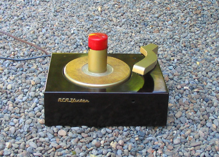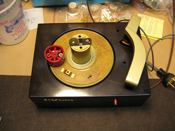 I've done electronic projects all my life, and I have to say, this one was challenging. This is apparently the very first model of 45 record player ever made. I think it's the cutest, and therefore wanted to give it a go. It now sits on a shelf in my living room next to a 1935 Belmont cathedral radio that I also refurbished. This version of the 45 record player has no built in amplifier and speaker, so depends on there being a radio or equivelent to plug it into. I added an RCA phono input jack to the back of my cathedral radio while refurbishing it, just for this.