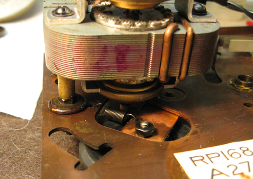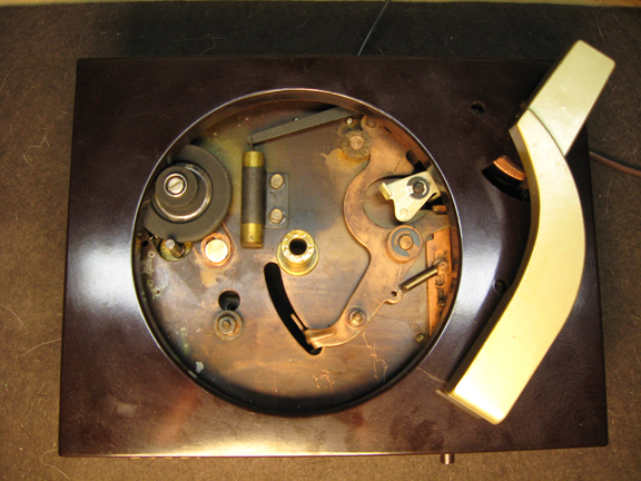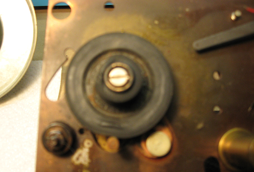 The idler wheel was rock hard and with a very bad flat spot where the motor shaft, and turntable rim had been held against it for up toward 50 years. Sorry about the blurry picture.