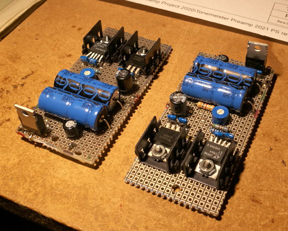 This version of this preamp is pretty much the same as my Previous Tonemeister Preamp, but this one is optimized for a monopolar powersupply as low as about 12 volts, rather than the more normal +/-15VDC.