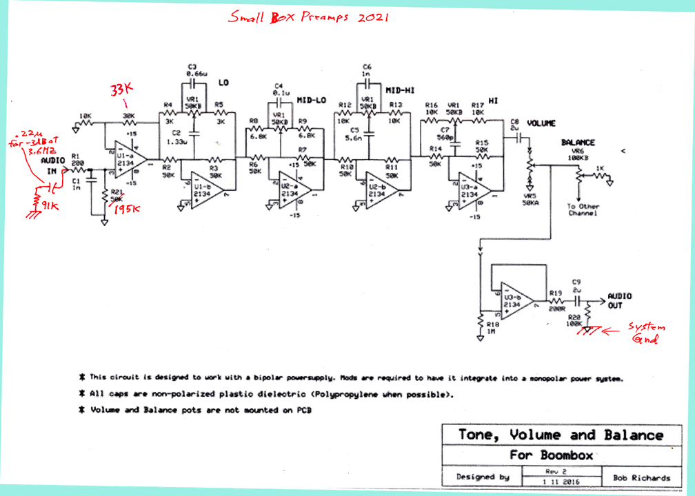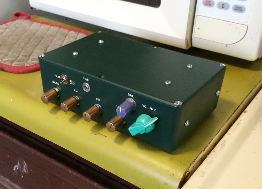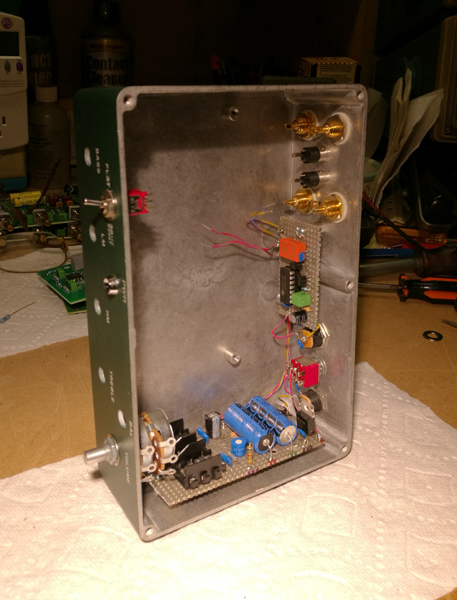 The version of this preamp I used in my previous boombox project is the same preamp board, but it didn't have the active woofer EQ board added to it.
