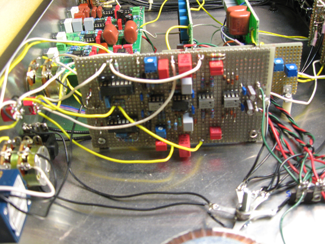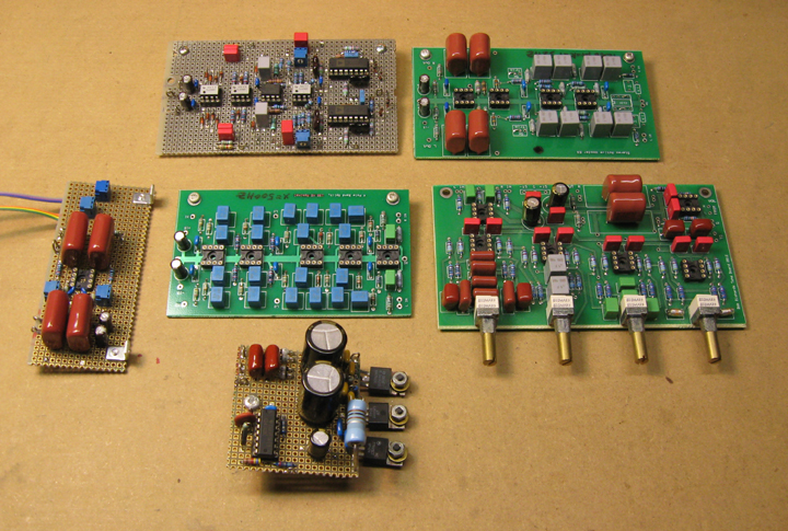 The board in the foreground is a 2 way 4th order Linkwitz-Riley active crossover with X = 500HZ.