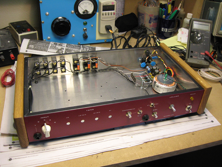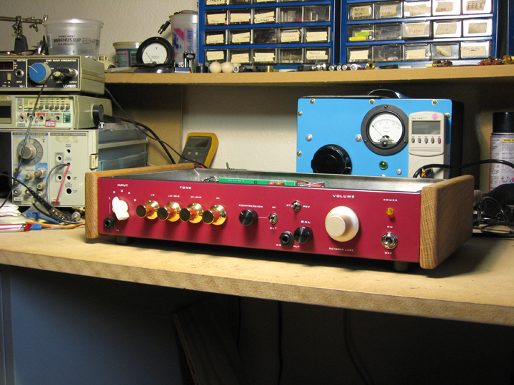 A Hammond aluminum chassis looks way better with the white oak end panels.